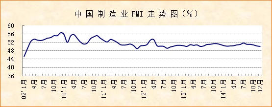 中國物流與采購聯合會、國家統計局服務業調查中心發布的2014年12月份中國制造業采購經理指數(PMI)為50.1%,較上月回落0.2個百分點,降幅收窄,反映出當前經濟下行態勢趨緩。從全年來看,制造業PMI平均水平50.7%,與前兩年平均水平基本相當,并未出現大幅下降,顯示經濟運行穩定性增強,增速處在適度合理區間。與此同時,就業形勢良好,節能減排成效顯現,經濟運行較為協調;結構調整加快,服務業和新興產業蓬勃發展,顯示經濟運行的平衡性明顯增強。綜合來看,新常態經濟平臺正在形成,2015年經濟運行有望轉平穩。