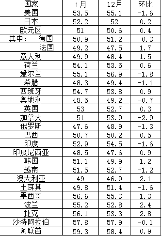 2015年1月全球主要國家和地區制造業PMI指數