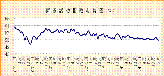 中國物流與采購聯合會、國家統計局服務業調查中心發布的2016年2月份中國非制造業活動穩中有落。商務活動指數保持在52.7%的較高水平,但環比回落0.8個百分點。指數的下行主要是受建筑業和批發業等行業淡季回落的影響。服務業指數表現相對穩定,指數小幅波動。