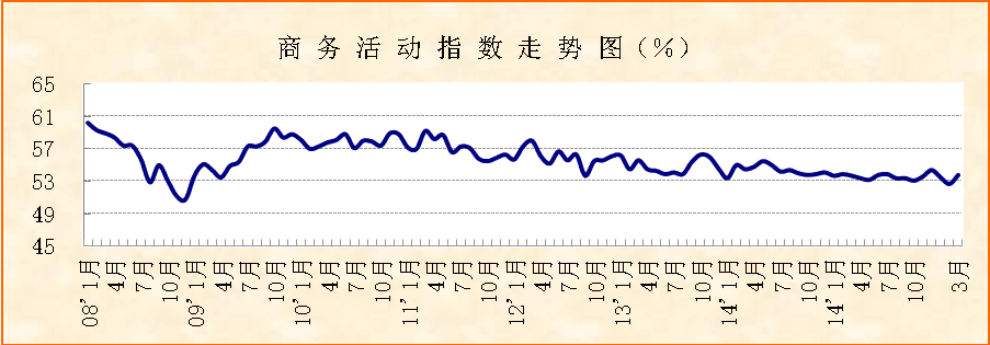 中國物流與采購聯合會、國家統計局服務業調查中心發布的2016年3月份中國非制造業活動有所回升。商務活動指數環比上升1.1個百分點,達到53.8%。主要指數中,新訂單指數和銷售價格指數均有回升,新訂單指數升幅更為明顯,意味著經濟潛在增長動力有所增強,市場基本面保持向好發展態勢。