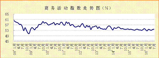 中國物流與采購聯(lián)合會、國家統(tǒng)計局服務(wù)業(yè)調(diào)查中心發(fā)布的2016年7月份中國非制造業(yè)商務(wù)活動指數(shù)為53.9%,環(huán)比上升0.2個百分點,連續(xù)五個月穩(wěn)定53%以上,表明非制造業(yè)經(jīng)濟平穩(wěn)快速增長的格局沒有變。