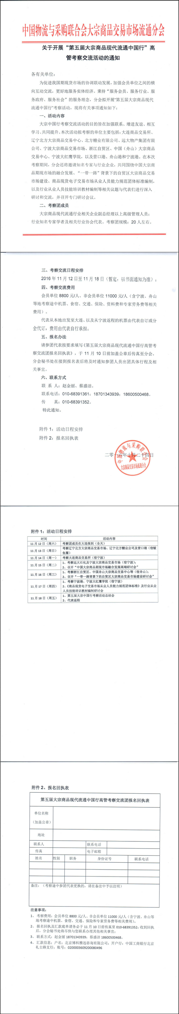 關于開展“第五屆大宗商品現代流通中國行”高管考察交流活動的通知