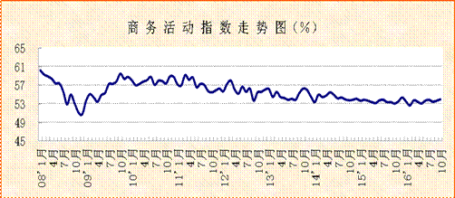 中國物流與采購聯(lián)合會、國家統(tǒng)計局服務(wù)業(yè)調(diào)查中心發(fā)布的2016年10月份中國非制造業(yè)商務(wù)活動指數(shù)環(huán)比上升0.3個百分點(diǎn),達(dá)到54.0%,連續(xù)兩個月環(huán)比上升,升幅較上月稍有擴(kuò)大,市場經(jīng)營保持持續(xù)上升趨勢。
