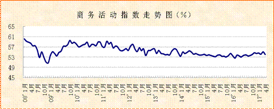 中國物流與采購聯合會、國家統計局服務業調查中心發布的2017年4月份中國非制造業商務活動指數環比回落1.1個百分點,達到54.0%。本月指數的回落存在經濟運行周期規律的影響。如以大宗商品批發為主的批發業在經過一季度企業集中采購后,回歸平穩,其商務活動指數有所回落,但仍保持在50%以上。銀行房貸業務的收縮和資本市場的波動導致金融業商務活動指數的高位回落,也是促成非制造業商務活動指數回落的主要因素之一。但54%的指數水平,意味著非制造業仍保持在較快發展的軌道之中。從一些細分數據看,有利于經濟發展的積極因素仍在積聚。 表現在: