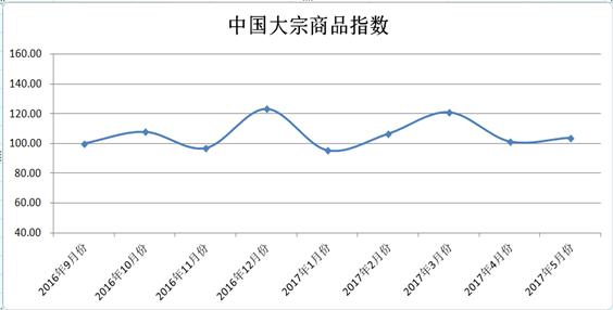 由中國物流與采購聯合會調查發布的2017年5月中國大宗商品指數為103.8%,升幅較4月份擴大2.5個百分點。各分項指數中,除大宗商品價格指數有所回落外,其余指數均有不同程度的回升。反映出在宏觀經濟繼續保持穩中向好的局面下,當前國內大宗商品市場形勢有所回暖,總體供需關系良好。