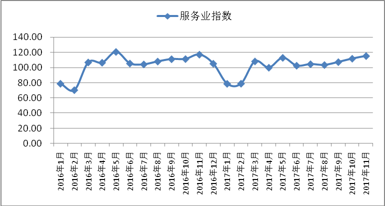 服務(wù)業(yè)整體運(yùn)行良好。14個服務(wù)業(yè)大類中,11個服務(wù)業(yè)商務(wù)快件指數(shù)高于100%。其中交通運(yùn)輸倉儲郵政業(yè)、批發(fā)零售業(yè)、住宿餐飲業(yè)、租賃服務(wù)業(yè)商務(wù)快件指數(shù)分別達(dá)到127.2%、120.2%、122.0%和115.3%,盡管環(huán)比有所回落,但依然保持較高水平。受房地產(chǎn)政策影響,房地產(chǎn)業(yè)和建筑業(yè)商務(wù)快件指數(shù)回落明顯,11月份分別為102.6%和99.4%,分別比上月回落4.9個百分點(diǎn)和8.3個百分點(diǎn)。