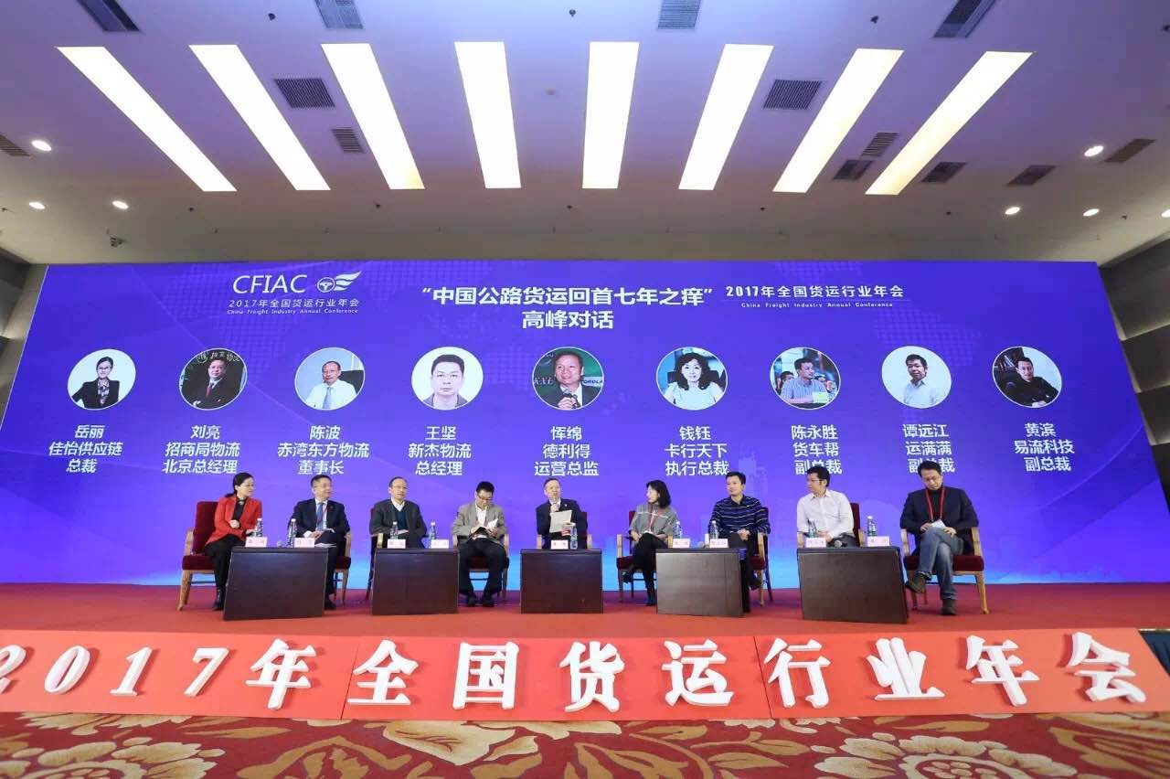 在“中國公路貨運回首七年之癢”——高峰對話環節,新杰物流集團有限公司總經理、中物聯公路貨運分會輪值會長王堅,上??ㄐ刑煜鹿湽芾碛邢薰緢绦锌偛谩⒅形锫摴坟涍\分會輪值會長錢鈺,佳怡供應鏈企業集團總裁、中物聯公路貨運分會副會長岳麗,招商局物流集團北京有限公司總經理、中物聯公路貨運分會副會長劉亮,深圳市赤灣東方物流有限公司董事長陳波,貴陽貨車幫科技有限公司副總裁陳永勝,江蘇滿運軟件科技有限公司副總裁譚遠江、深圳市易流科技股份有限公司副總裁黃濱作了精彩互動。