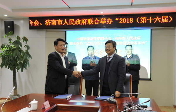 中物聯(lián)與濟(jì)南市人民政府就聯(lián)合舉辦“2018(第十六屆)中國物流企業(yè)家年會(huì)”簽訂合作協(xié)議