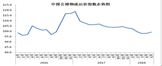 中國物流與采購聯合會發布的2018年5月份中國物流業景氣指數為56.1%,較上月回升1.5個百分點;中國公路物流運價指數為99.3點,比上月回升1.13%。