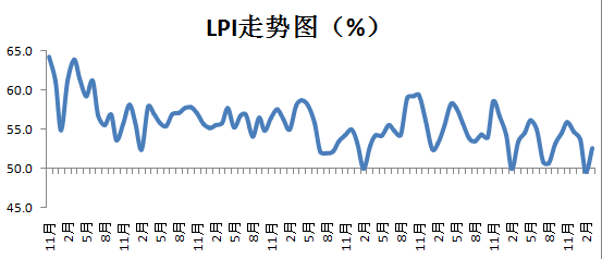 資金周轉率指數回升。3月份,資金周轉率指數為53%,比上月回升3.1個百分點。顯示出由于資本市場的活躍帶動物流市場業務活動,企業資金情況有所改善。