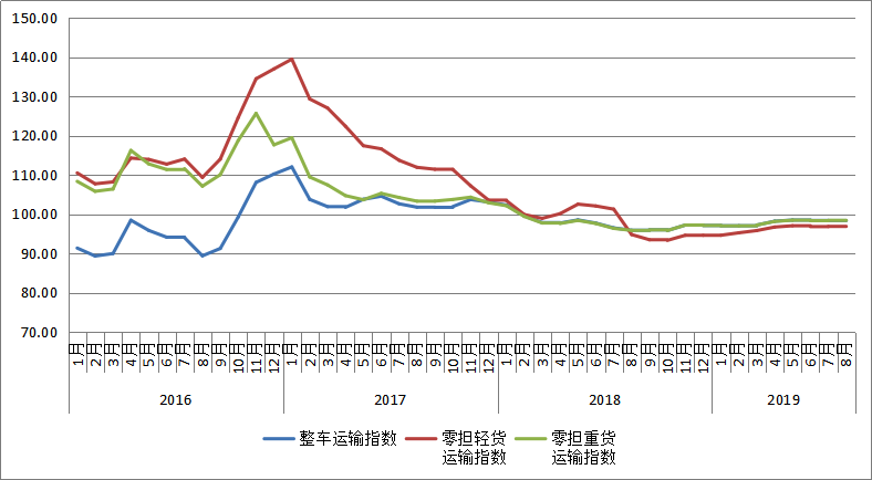 表1 2019年8月中國公路物流運價指數(shù)表
