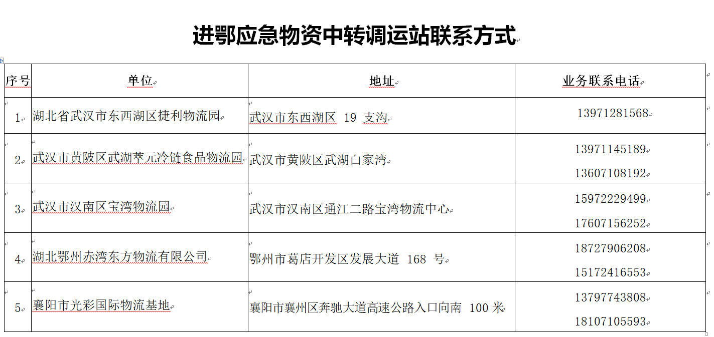 按照國務(wù)院有關(guān)新型冠狀病毒感染肺炎防控工作的部署要求,為確保外省進(jìn)鄂道路運(yùn)輸通道暢通,有效保障湖北省疫情防控各類物資的及時運(yùn)輸,湖北省新型冠狀病毒感染肺炎防控指揮部在武漢周邊確定了5個物流園區(qū)作為進(jìn)鄂應(yīng)急物資道路運(yùn)輸中轉(zhuǎn)調(diào)運(yùn)站,為外省進(jìn)鄂的各類應(yīng)急物資運(yùn)輸提供中轉(zhuǎn)轉(zhuǎn)運(yùn)服務(wù)。為確保應(yīng)急物資運(yùn)輸順暢高效,現(xiàn)將湖北省防控指揮部交通保障組印發(fā)的《關(guān)于確保進(jìn)鄂應(yīng)急物資道路運(yùn)輸通暢運(yùn)行的通知》轉(zhuǎn)發(fā)你省,并就統(tǒng)籌做好進(jìn)鄂應(yīng)急物資中轉(zhuǎn)運(yùn)輸通知如下: