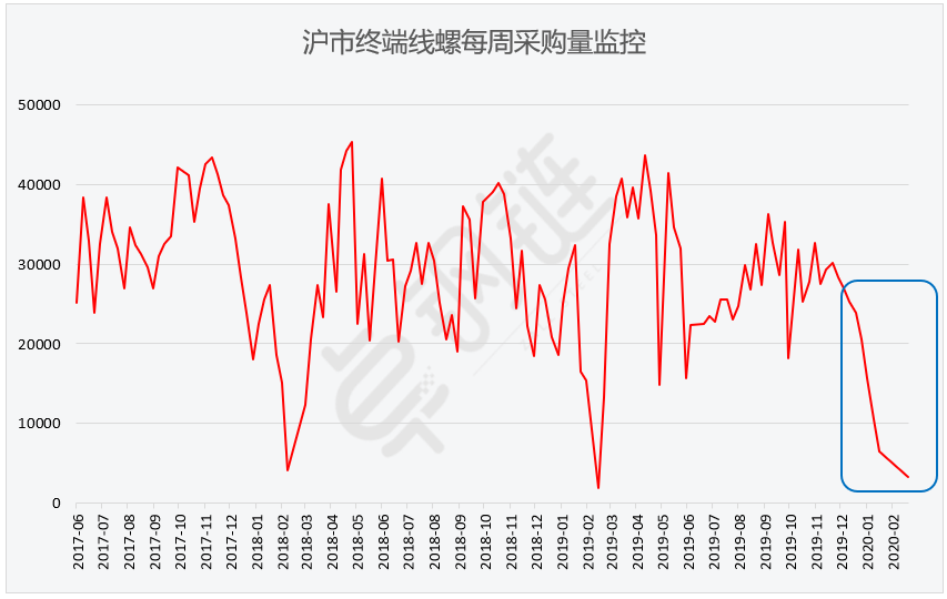 根據上海卓鋼鏈調研,下游終端大面積復工基本要在3月份之后。從監測的滬市終端線螺采購數據來看,2月份終端日均采購量環比大幅下降70.55%,需求萎縮明顯。