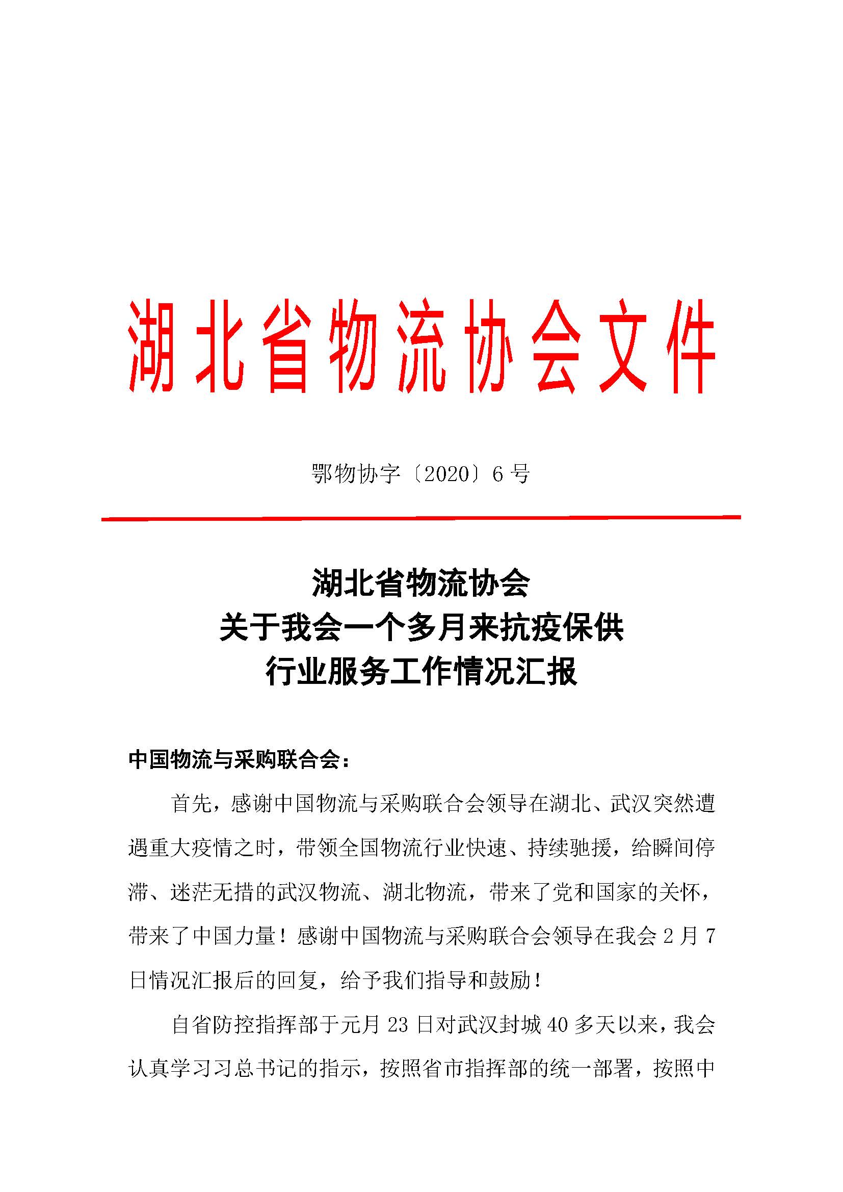 湖北省物流協(xié)會(huì):關(guān)于我會(huì)一個(gè)多月來抗疫保供行業(yè)服務(wù)工作情況匯報(bào)