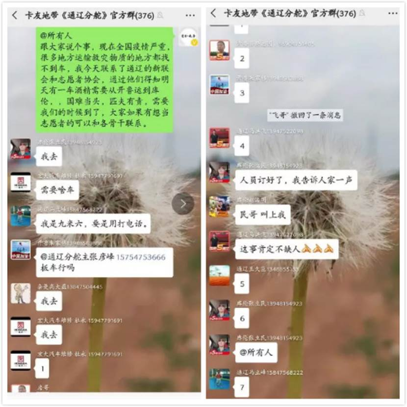 2月4日,通遼卡友地帶負責人接到庫倫旗發改委電話,有一車消毒酒精共計:1200桶,需要從開魯運送到庫倫旗政府。消息在群里發出后,通遼的卡車司機們積極響應報名,遠不止十位。