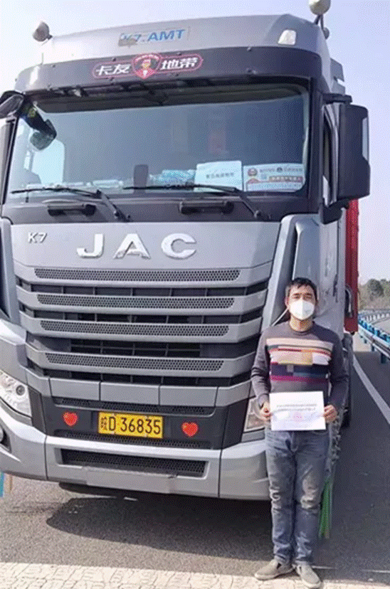 支援武漢,李強的想法很簡單:“作為一名貨車司機,沒有余力為武漢捐錢捐物,我只有一輛車,能幫上點兒忙,能為馳援武漢做點事情,我很安心,我能做的只有這些了?!?/span>