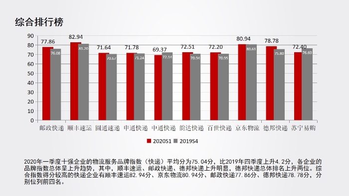 中國物流服務品牌指數(快遞物流)報告2020一季度