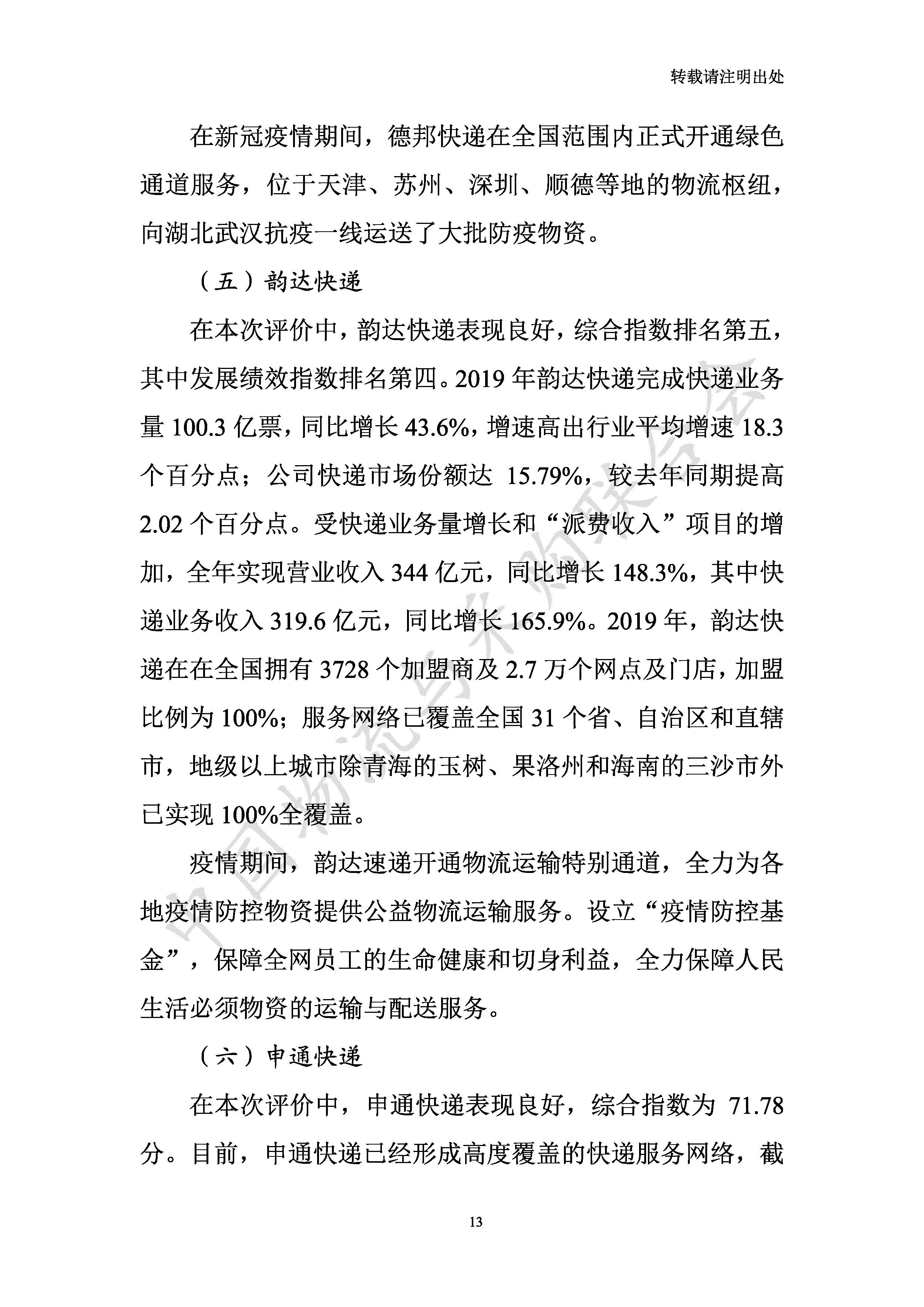 品牌是國家綜合實力的重要標志,也是衡量企業價值和服務品質的綜合體現。為更好地樹立行業標桿、彰顯品牌價值、宣傳服務典范,在第四個“中國品牌日”,中國物流與采購聯合會推出2020年一季度中國物流品牌評價(快遞物流)指數報告。
