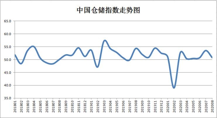 中國(guó)物流與采購(gòu)聯(lián)合會(huì)和中儲(chǔ)發(fā)展股份有限公司聯(lián)合調(diào)查的中國(guó)倉(cāng)儲(chǔ)指數(shù),2020年8月份為50.8%,較上月下降2.7個(gè)百分點(diǎn)。指數(shù)小幅回落,反映出行業(yè)發(fā)展速度有所減緩,短期壓力加大。但指數(shù)連續(xù)六個(gè)月保持在榮枯線以上,表明行業(yè)整體運(yùn)行仍將保持平穩(wěn)向好趨勢(shì)。
