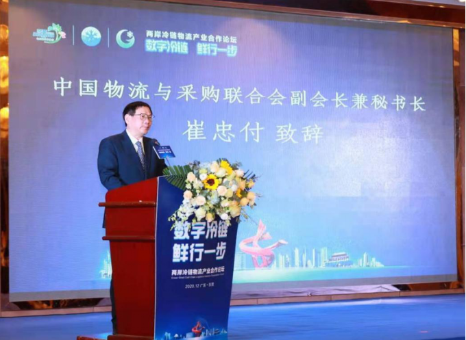 12月2日,由中國物流與采購聯合會、東莞市人民政府主辦,中國物流與采購聯合會規劃研究院、東莞市商務局承辦的2020年兩岸冷鏈物流產業合作論壇在東莞市舉辦。中國物流與采購聯合會副會長兼秘書長崔忠付出席并致辭。商務部臺港澳司副司長李曉暉、國臺辦經濟局副局長袁野、東莞市政府副秘書長梁紹光、臺灣冷鏈協會理事長程東和以及來自全國臺灣同胞投資企業聯誼會、兩岸冷鏈物流產業合作城市的商務部門、行業商協會、大陸冷鏈物流企業代表也參加了本次論壇。