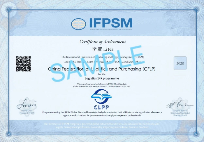 根據IFPSM有關規定和互認協議,取得物流管理1+X證書的的人員可申領由國際采購與供應管理聯盟頒發的國際證書,該證書在全球范圍內得到認可,并可以得到全球標準互認聯盟內的國家和組織相關證書的互認以及院校相關課程學分的互認。