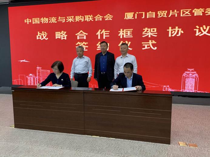 中國物流與采購聯合會會長助理胡大劍代表中物聯與廈門自貿委簽署戰略合作協議