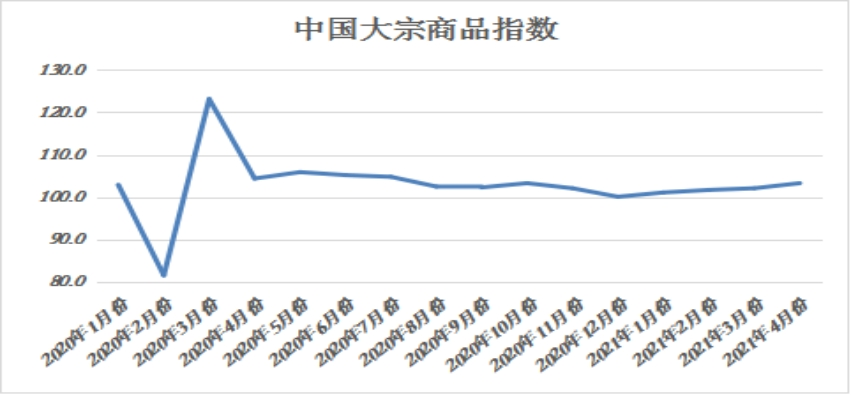 由中國物流與采購聯合會調查、發布的2021年4月份中國大宗商品指數(CBMI)為103.3%,連續四個月上升。各分項指數中,銷售指數升幅明顯,供應指數止跌回升,庫存指數出現回落。從指數的變化情況來看,4月份CBMI繼續上升,表明當前國內大宗商品市場穩中向好的特點進一步顯現。供應指數略有回升,顯示國內商品供應增長平穩;銷售指數明顯上升,預示國內市場需求良好;庫存指數回落,表明市場供求關系開始趨于平衡,生產經營活動趨于平穩。綜合來看,供需雙側繼續聯動上升,商品庫存有所回落,國內大宗商品相關企業生產經營環境進一步改善,行業穩中向好的態勢繼續深入發展。不過,值得關注的是近期大宗商品價格不斷上漲,一方面對相關商品生產的刺激作用加大,但另一方面也將會提高企業的原材料采購和生產成本,進而抑制需求。