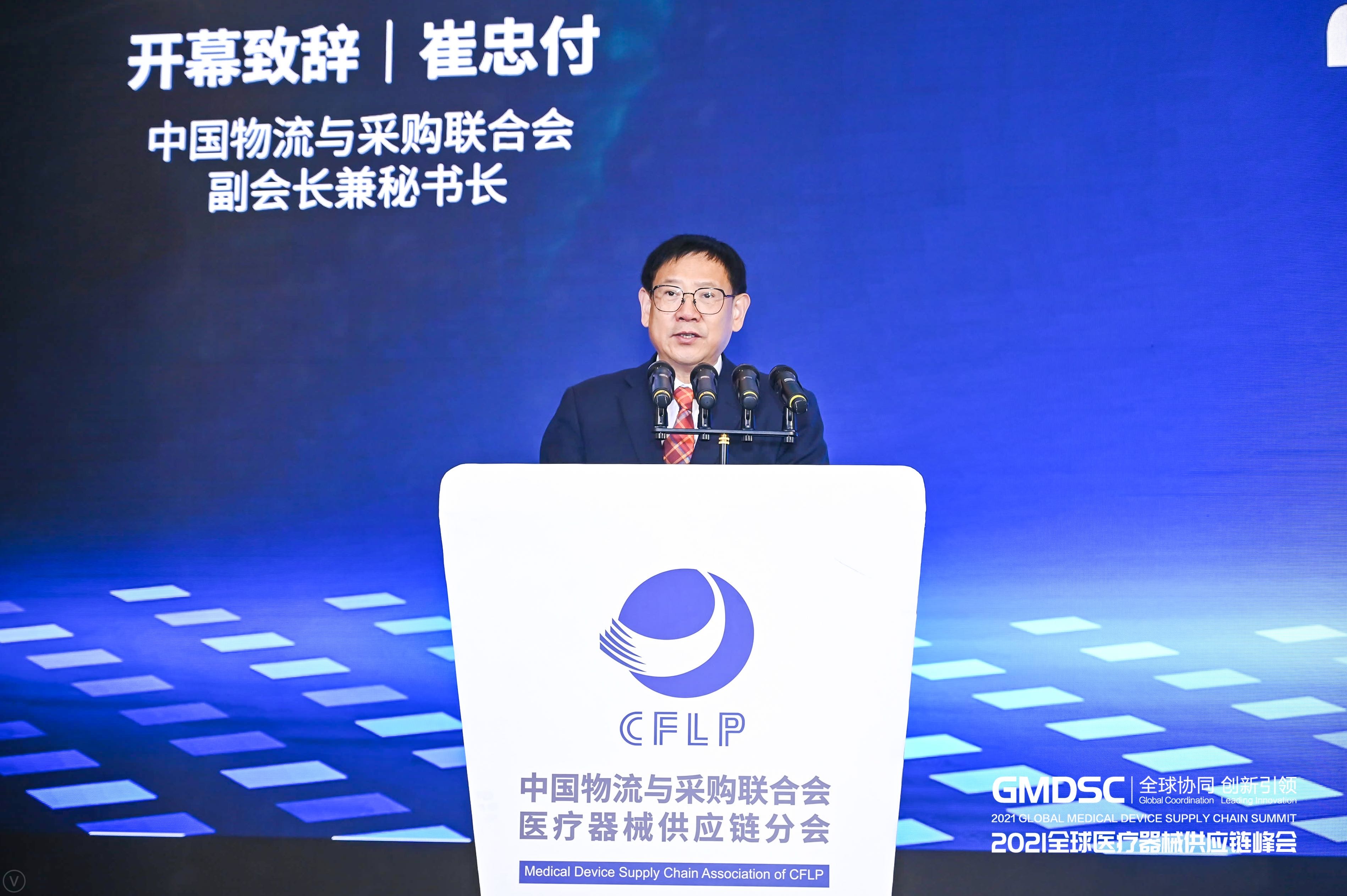 2021年6月24日,2021全球醫(yī)療器械供應(yīng)鏈峰會(huì)在上海舉行,中國(guó)物流與采購(gòu)聯(lián)合會(huì)副會(huì)長(zhǎng)兼秘書長(zhǎng)崔忠付出席并致辭。
