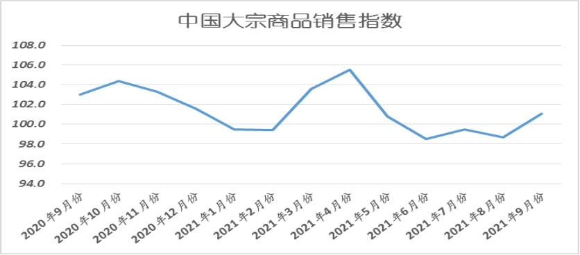 2021年9月份,大宗商品銷售指數觸底反彈,當月較上月回升2.4個百分點,升至近五個月以來的最高,顯示隨著高溫天氣緩解,各地工程施工進度加快,市場需求有所恢復,企業訂單開始增加,商品產銷銜接較為順暢。進入10月份,預計市場需求將會持續回升,從往年來看,國慶節后才是下半年傳統旺季需求最好的時段。地方債發行余額充足,基建等重大項目有望加速運行,船舶和集裝箱行業將延續快速增長態勢。不過,當前經濟擴張動能放緩,國內資金面持續收緊趨勢明顯,1-8月份,房屋新開工面積下降3.2%;房地產開發企業土地購置面積同比下降10.2%;土地成交價款下降6.2%。結合來看當前房地產市場面臨一定困境,對大宗商品市場的需求支撐也將難有明顯的改善效果。