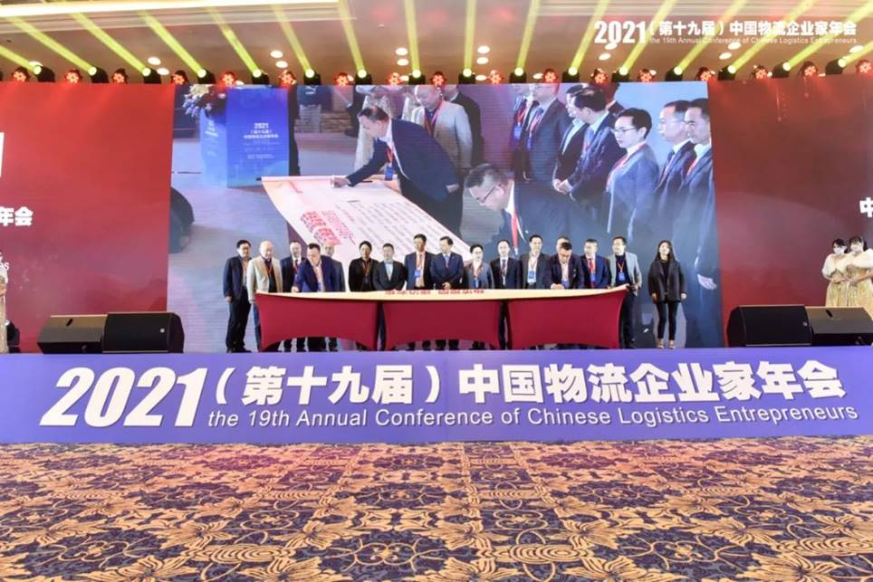在中國物流與采購聯合會會長何黎明的現場見證下,來自中國物流集團有限公司等16家領軍企業的知名物流企業家,作為本次聯合宣言的企業代表進行了簽字儀式。