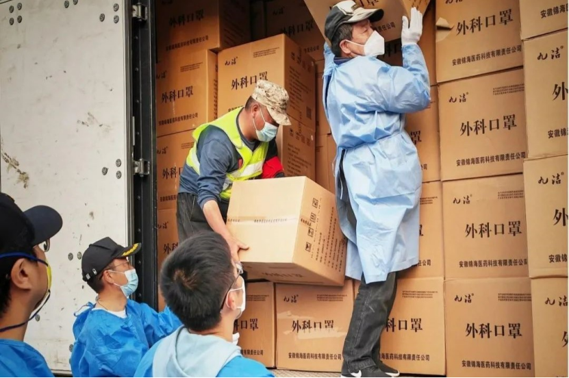 4月6日:天地華宇接到楊浦區發改委緊急求助,從普陀區調運60萬盒蓮花清瘟、100萬支抗原檢測試劑、50萬只口罩進行配送支援。截止目前,共發運15車次。