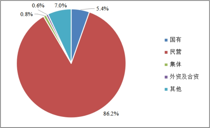 被調查的中小微物流企業主要是民營企業。調查數據顯示,民營性質中小微企業占比高達86.2%,國有性質企業次之,占比為5.4%,集體性質和外資及合資性質企業占比較少,合計為1.4%。
