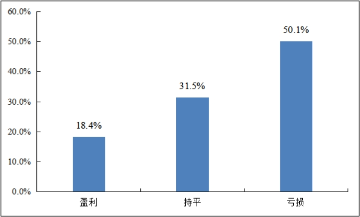 中小微物流企業虧損面過半,生存壓力大增。調查數據顯示,超過一半的被調查企業利潤出現虧損,近三分之一的企業利潤基本持平,僅有18.4%的企業實現盈利。