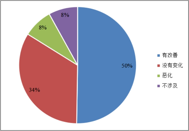 中小微物流企業反映車輛通行環境較上年總體改善。調查數據顯示,有一半的企業反映車輛通行環境較上年有所改善,也有34%的企業反映通行環境較上年沒有變化。企業總體反映,高速公路通行環境好于國省道。