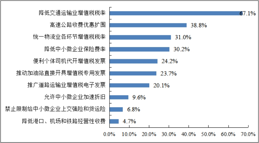 希望獲得的稅費支持政策排名第二的是高速公路收費優惠擴圍。企業反映,高速公路由原來的計重收費方式改為按車(軸)型收費方式,空車、輕泡貨運輸為主的快遞車輛,單程運輸為主的冷鏈、車輛運輸車等車輛通行費上漲較多,導致這些車輛選擇走國道,增加了國道擁堵也浪費了高速公路資源,亟需出臺更具針對性的措施引導空車等回流高速。