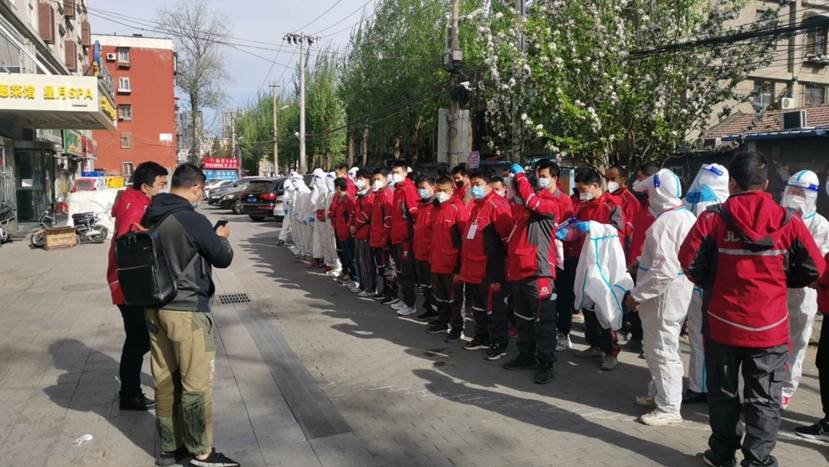 4月9日,北京朝陽區酒仙橋街道多處居民區實行封控措施。京東物流有2個營業部在封控社區里,平時與周邊社區聯系緊密。4月10日,酒仙橋被封后的第二天,京東聯系到朝陽區防疫辦,了解到酒仙橋街道有志愿者需求。4月11日,有關部門迅速給京東辦理了通行證、出入證。4月12日,京東在封控區外召集志愿者,快遞小哥們報名踴躍,一夜之間就確定了40人的志愿者名單。