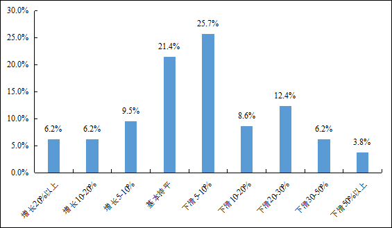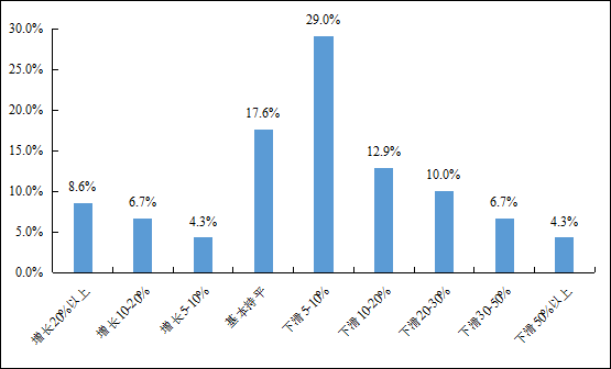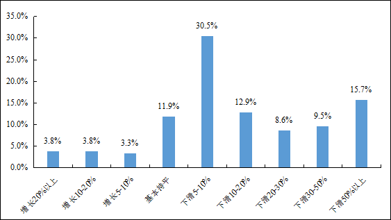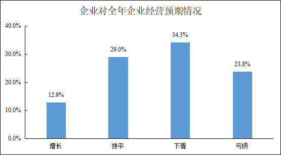 行業全年預期總體有所好轉。調查數據顯示,預期全年經營出現增長或持平的達41.9%,其中,12.9%的企業預期經營出現增長。但是仍有34.3%的企業預期全年經營出現下滑,其中,23.8%的企業預期會出現虧損局面。