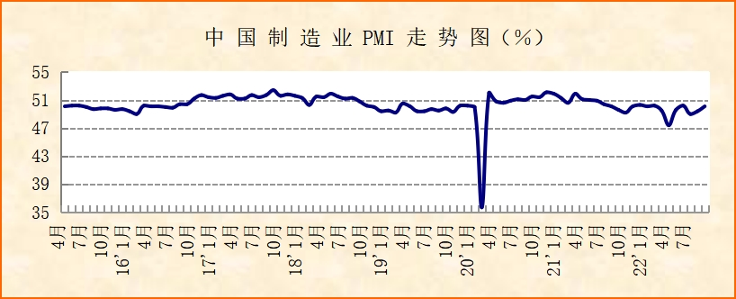 中國物流與采購聯合會、國家統計局服務業調查中心發布的2022年9月份中國制造業采購經理指數(PMI)為50.1%,較上月上升0.7個百分點,在連續2個月運行在50%以下后重回擴張區間,顯示經濟走勢穩中向好。分項指數變化顯示,市場供需兩端回升,基礎原材料行業較快恢復,保市場主體效果顯現,就業保持穩定。但當前不穩定不確定因素仍然較多,四季度仍需進一步鞏固穩中向好恢復勢頭。