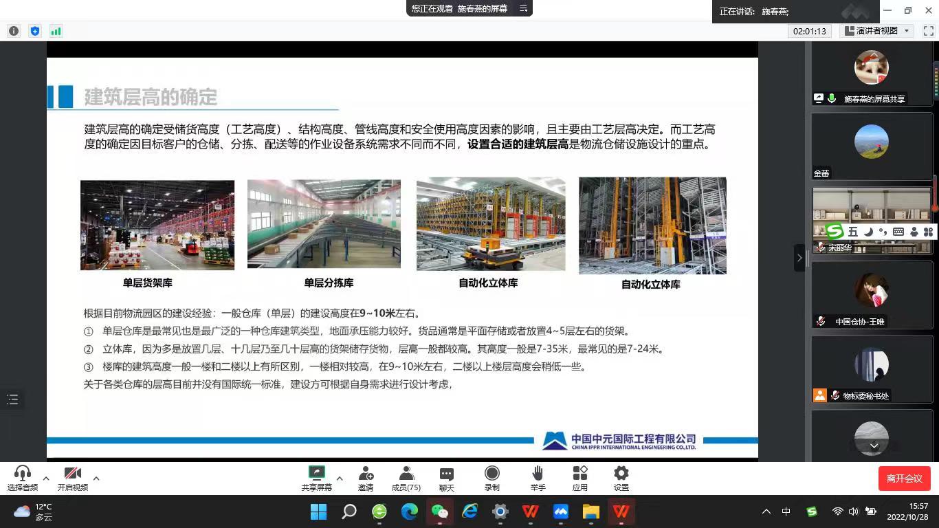 活動中,兩項標準牽頭起草單位中國倉儲與配送協會的起草人李小昂、王唯分別對標準修訂的背景、主要內容進行了解讀。普洛斯高級副總裁,上海海屹設計有限公司院長陶蓉分享了先進的倉庫和庫區設計,以及智慧化、綠色低碳理念在倉庫和庫區設計中的前沿實踐。中國中元國際工程有限公司物流工程設計所所長施春燕以具體倉庫和庫區項目的細節設計和參數設置等方面,闡釋了標準在實踐中的應用。