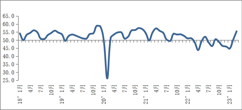 中國物流與采購聯(lián)合會發(fā)布的2023年3月份中國物流業(yè)景氣指數(shù)為55.5%,環(huán)比上升5.4個百分點,連續(xù)兩個月回升,累計升幅超過10個百分點。分項指數(shù)全面上升,其中業(yè)務(wù)總量指數(shù)、新訂單指數(shù)、庫存周轉(zhuǎn)次數(shù)指數(shù)、資金周轉(zhuǎn)率指數(shù)和主營業(yè)務(wù)利潤指數(shù)等企業(yè)運營指標(biāo)較年初明顯上升。指數(shù)走勢反映出在穩(wěn)增長、穩(wěn)預(yù)期、穩(wěn)消費等政策作用下,供應(yīng)鏈上下游產(chǎn)業(yè)活動趨于活躍,商品流通加快,行業(yè)微觀活力增強。綜合來看,一季度物流業(yè)景氣指數(shù)平均水平較去年同期和四季度均有明顯回升,反映出一季度物流供需加快恢復(fù),運行向好基礎(chǔ)有效鞏固。