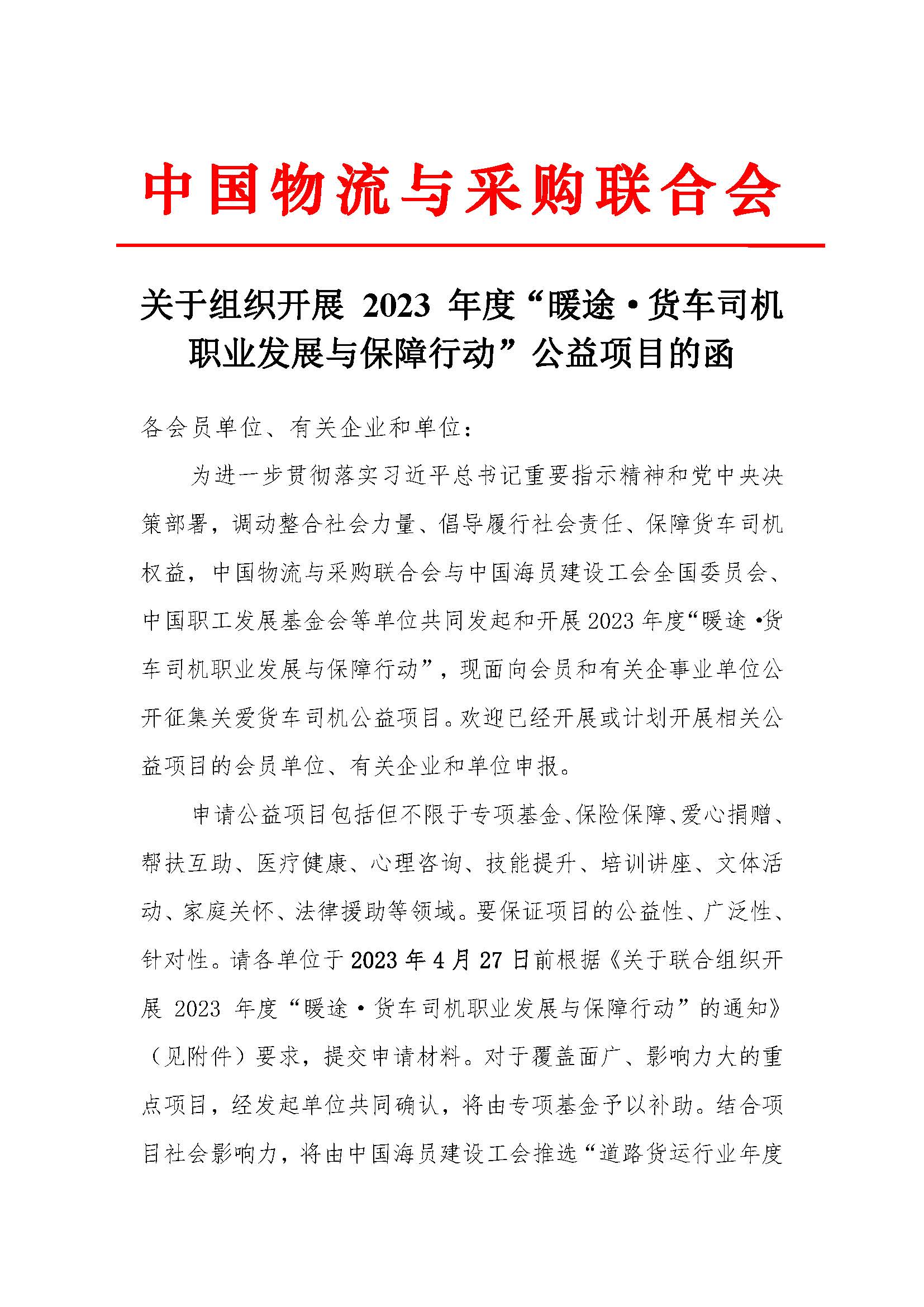 關于組織開展 2023年度“暖途·貨車司機 職業發展與保障行動”公益項目的函