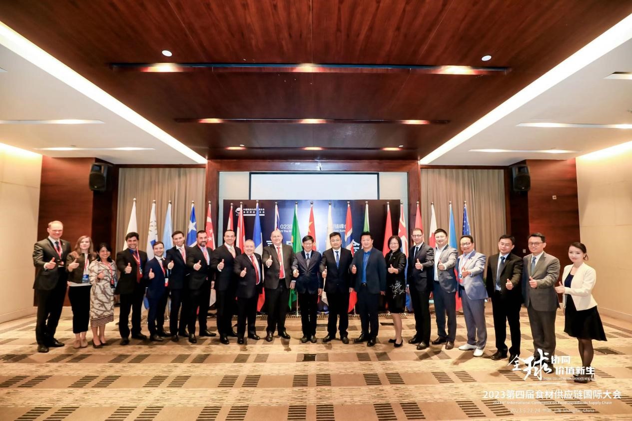 此外,崔忠付在大會期間還與巴西駐上??傤I事王古文、美國駐上海總領事館農業領事韓安睿、挪威海產局中國總監童安睿、阿根廷駐上海總領事館農業參贊奧斯卡、巴西動物蛋白協會市場總監Luís Rua、秘魯駐上??傤I事館經濟商務處商務經理可蘭、波蘭投資貿易局上海辦事處副代表Aleksandra Smolak、世界辣椒聯盟秘書長張盧卡、中物聯食材供應鏈分會2023年當值會長&正大集團農牧食品企業中國區資深副董事長王建華、中物聯食材供應鏈分會輪值會長&先正達集團中國首席品牌官&中國綠色食品有限公司總經理毛峰、泰森食品中韓區供應鏈副總裁陸悅飛、香港玉湖集團副董事長&玉湖冷鏈董事蔣文勝、開利商用冷凍全球副總裁兼總經理Eisenhuth,Marcus等中外嘉賓進行了會見,中國物流與采購聯合會食材供應鏈分會、國際合作部相關負責人共同參與了會見。