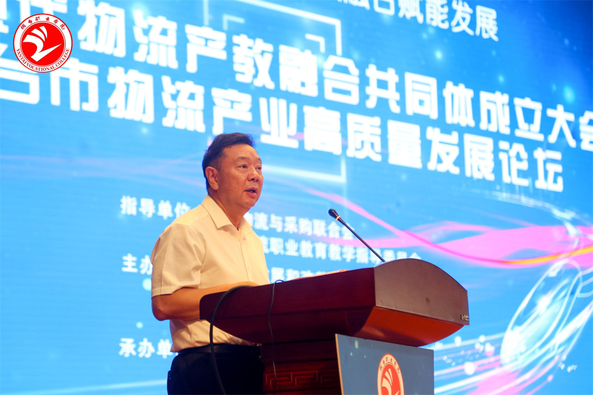 任豪祥首先代表中國物流與采購聯合會和全國物流職業教育教學指導委員會對煙臺市現代物流產教融合共同體的成立表示祝賀。任豪祥指出,黨的二十大報告再次明確了職業教育的改革發展方向,“一體兩翼”成為新階段深化現代職業教育體系建設改革的三大戰略任務,其中“行業產教共同體”作為“兩翼”之一,是新階段職業教育改革的新載體,是推進產教融合、科教融匯的重要抓手,要聯合龍頭企業共同牽頭組建學校、科研機構、上下游企業等共同參與的跨區域產教融合共同體,通過專業共建、校企聯合招生與共同培養、企業員工培訓與繼續教育、技術創新與服務來推動職業教育創新發展。
