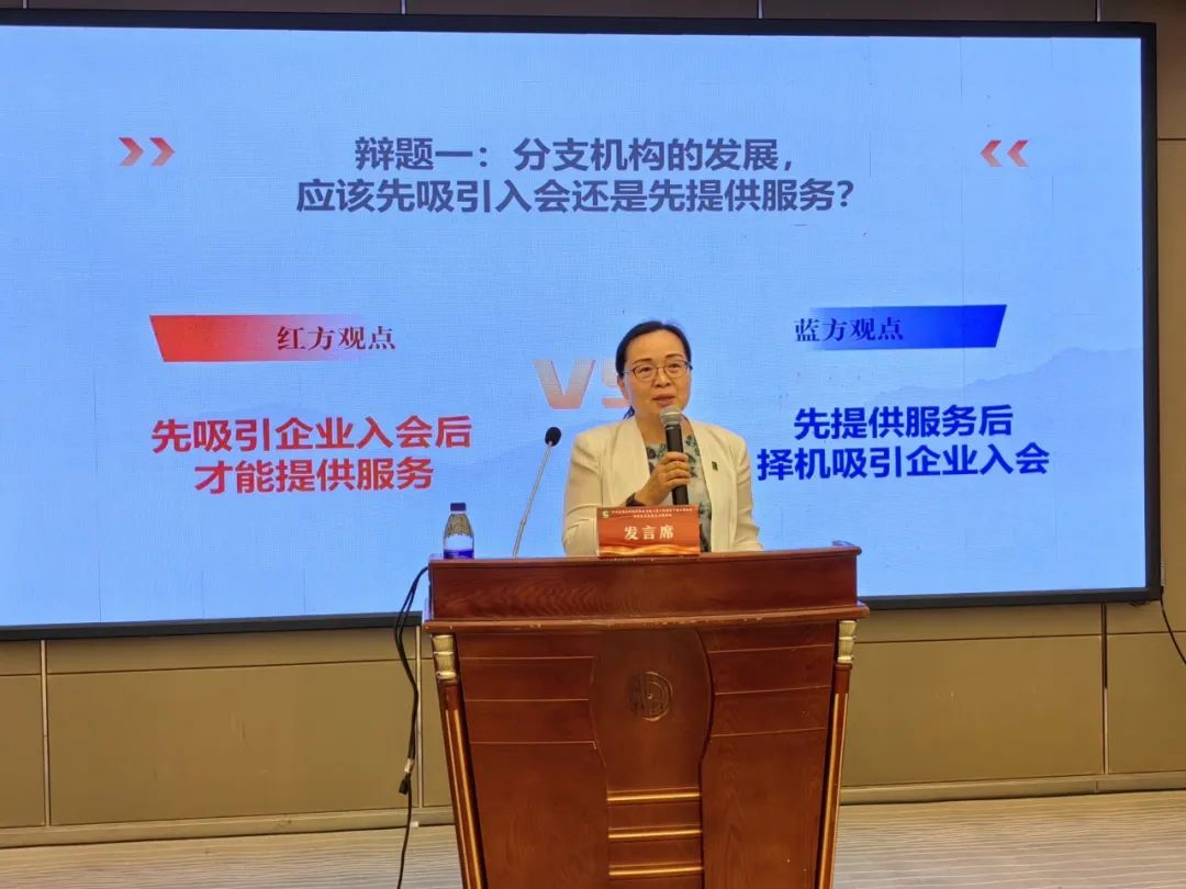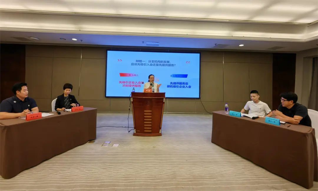 第一場辯題為:分支機(jī)構(gòu)的發(fā)展,應(yīng)該先吸引入會還是先提供服務(wù)?主持人為協(xié)會副會長兼家居建材市場專業(yè)委員會主席張彩虹。紅方觀點(diǎn)為先吸引企業(yè)入會后才能提供服務(wù),一辯為室內(nèi)凈化服務(wù)專業(yè)委員會主席賈敏,二辯為建設(shè)工程供應(yīng)鏈專業(yè)委員會執(zhí)行主席樂志斌。藍(lán)方觀點(diǎn)為先提供服務(wù)后擇機(jī)吸引企業(yè)入會,一辯為防火玻璃專業(yè)委員會秘書長馮明,二辯為涂裝產(chǎn)業(yè)專業(yè)委員會主席官軍。