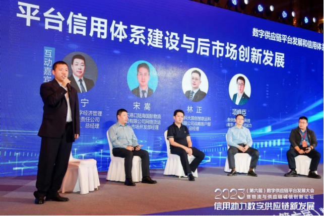 10月27日下午,作為2023(第六屆)數字供應鏈平臺發展大會暨物流與供應鏈誠信創新論壇的重要組成部分,以“數字供應鏈平臺發展和信用體系建設”為主題的分論壇在江蘇南京召開,圍繞平臺管理相關政策、供應鏈信用評價體系建設、數字供應鏈金融等熱點話題進行了深入探討。交通運輸部科學研究院現代物流研究中心閆建朝,中儲南京智慧物流科技有限公司供應鏈發展部總經理李冠瑾,工商銀行網絡融資中心數字供應鏈金融團隊負責人李幸,上海鋼聯物流發展研究院執行院長周理昆,安徽科大國創慧聯運科技有限公司戰略客戶部總經理林正,江西千隼智能科技有限公司趙龍飛,中國物流與采購聯合會網絡貨運信用大數據聯合實驗室副主任、廈門金融咨詢評信有限公司副總經理張偉峰,江蘇省物流產業促進會副會長、百驛智聯總經理尹小珍進行了主題演講。論壇由中國物流與采購聯合會副秘書長、評估辦主任楊國棟主持,其中高端對話環節由中物聯物流信息服務平臺分會副秘書長、會員部主任王衛軍主持。