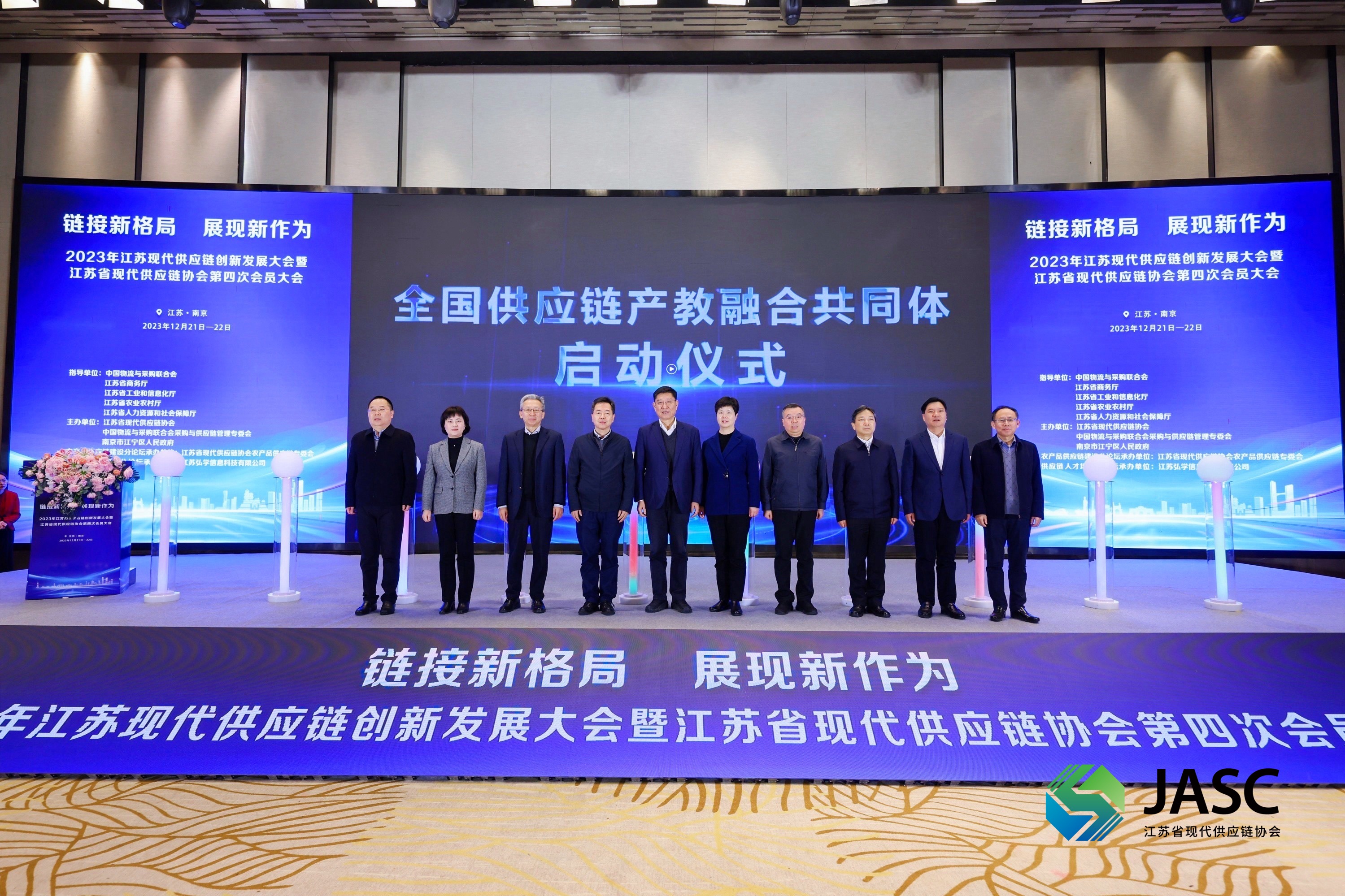 會議期間,江蘇省現代供應鏈協會與江寧區政府商務局共同發起設立“江蘇供應鏈創新研究院”。江蘇省現代供應鏈協會聯合蘇豪控股集團、南京曉莊學院、南京交通職業技術學院組建成立全國供應鏈產教融合共同體,舉行了全國供應鏈產教融合共同體啟動儀式。