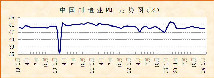 中國物流與采購聯合會、國家統計局服務業調查中心發布的2024年1月份中國制造業采購經理指數(PMI)為49.2%,較上月上升0.2個百分點,結束了連續3個月下降勢頭。分項指數變化顯示,制造業國內外市場需求均趨穩回升,企業生產活動加快增長,四大行業和大中小企業協同回穩。綜合來看,2024年經濟實現平穩開局。