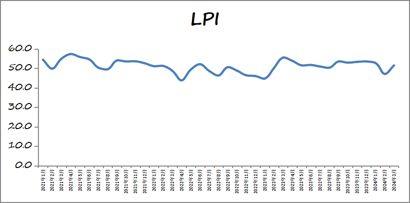 中國物流與采購聯合會發布的2024年3月份中國物流業景氣指數為51.5%,環比上升4.4個百分點。主要分項指數全面上升,其中業務總量指數、新訂單指數、庫存周轉次數指數、設備利用率指數回升明顯,資金周轉率指數和主營業務利潤指數等運營指標也有所改善。數據顯示,3月份供應鏈上下游活動趨于活躍,物流需求恢復加快,企業運營效率提升,行業投資增長和市場預期繼續鞏固。