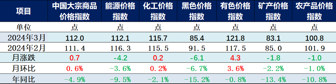 - 2024年3月份中國(guó)大宗商品價(jià)格指數(shù)(CBPI)為112,環(huán)比上漲0.6%