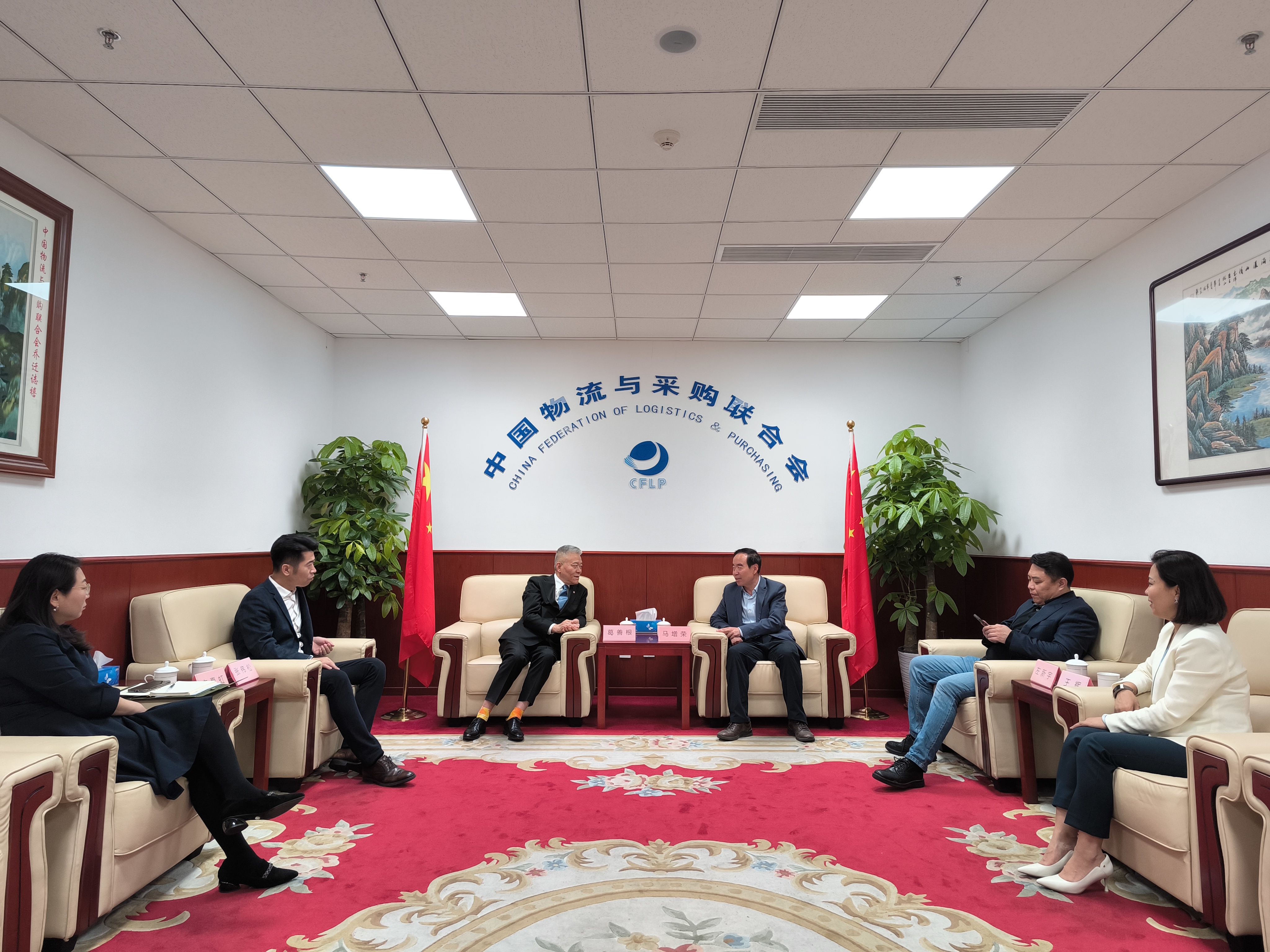 2024年4月29日,中國物流與采購聯合會會長何黎明在京會見來訪的美設國際物流集團董事長葛善根一行。中國物流與采購聯合會會長助理馬增榮參加會見并與葛善根進行座談交流。